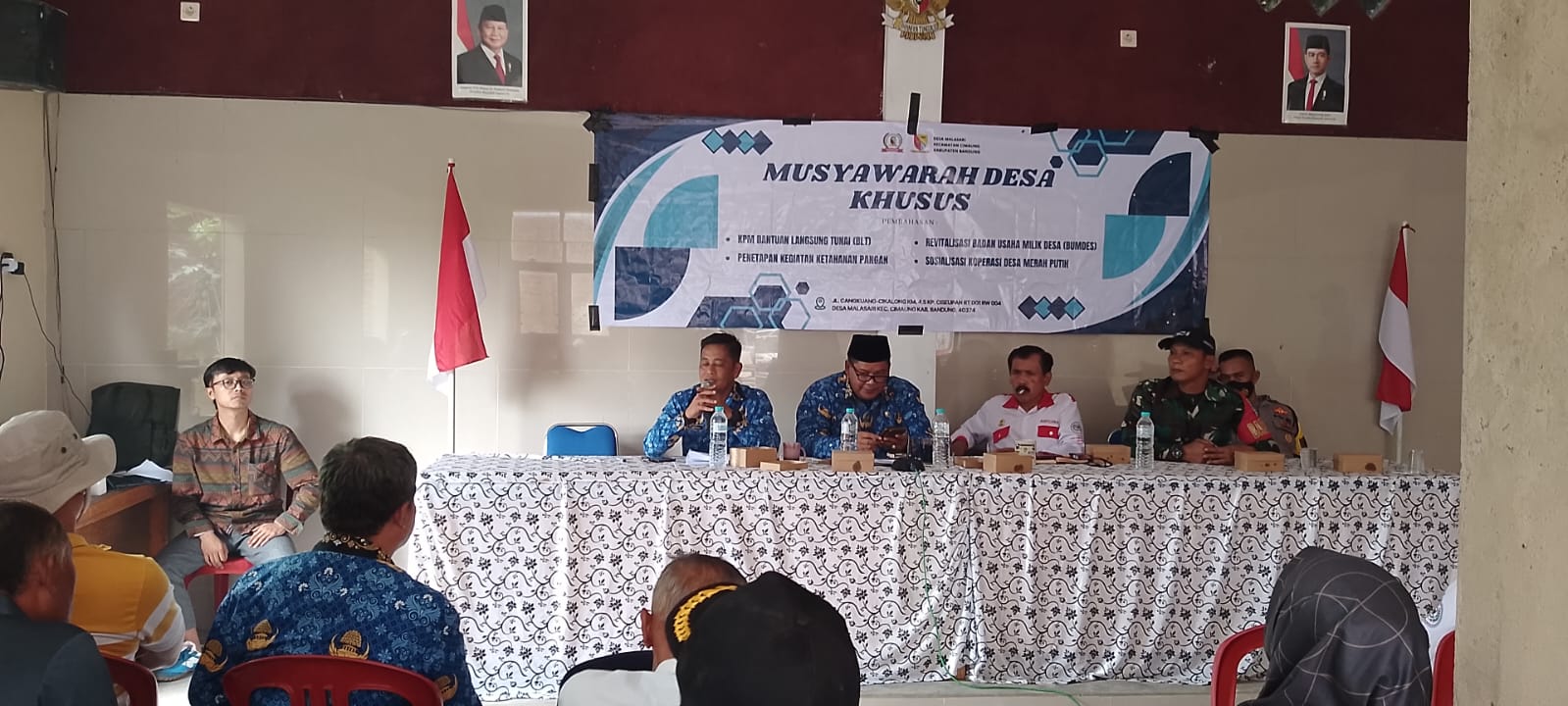 Kabupaten Bandung Qjabar – Pemerintah Desa Malasari mengadakan Musyawarah Desa Khusus (Musdesus) dengan pembahasan KPM Bantuan Langsung Tunai (BLT), Penetapan Kegiatan Ketahanan Pangan, Revitalisasi Badan Usaha Milik Desa (BUMDES) dan Sosialisasi Koperasi Desa Merah Putih. Kegiatan tersebut diadakan di Aula desa Malasari Kecamatan Cimaung kabupaten Bandung, Kamis 17 April 2025.