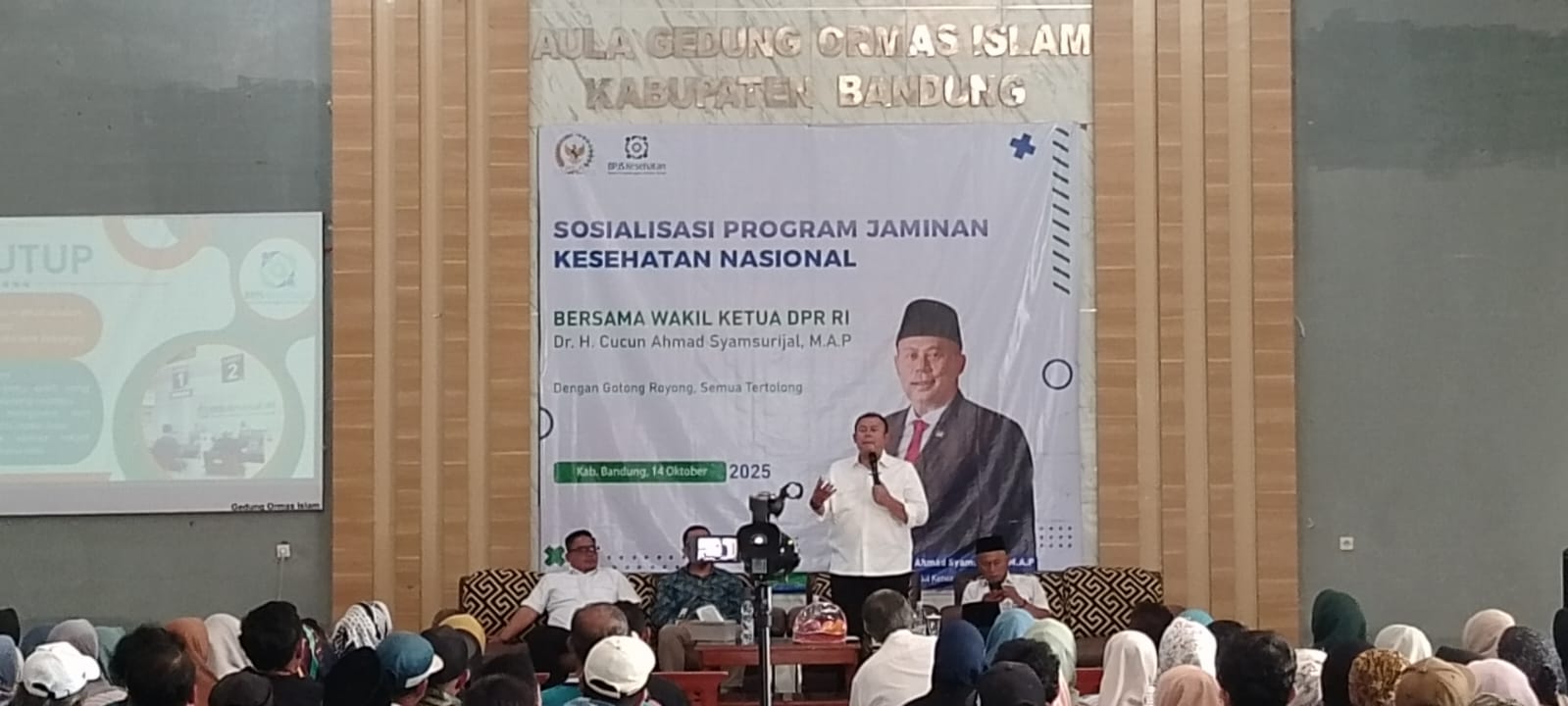 Kabupaten Bandung Qjabar – Ketua DPR RI, H. Cucun Ahmad Syamsurijal, kembali melakukan sosialisasi Program Jaminan Kesehatan Nasional (JKN) dan BPJS Ketenagakerjaan. Kali ini, kegiatan digelar di Gedung Ormas Soreang, Kabupaten Bandung, Selasa (14/10/2025).