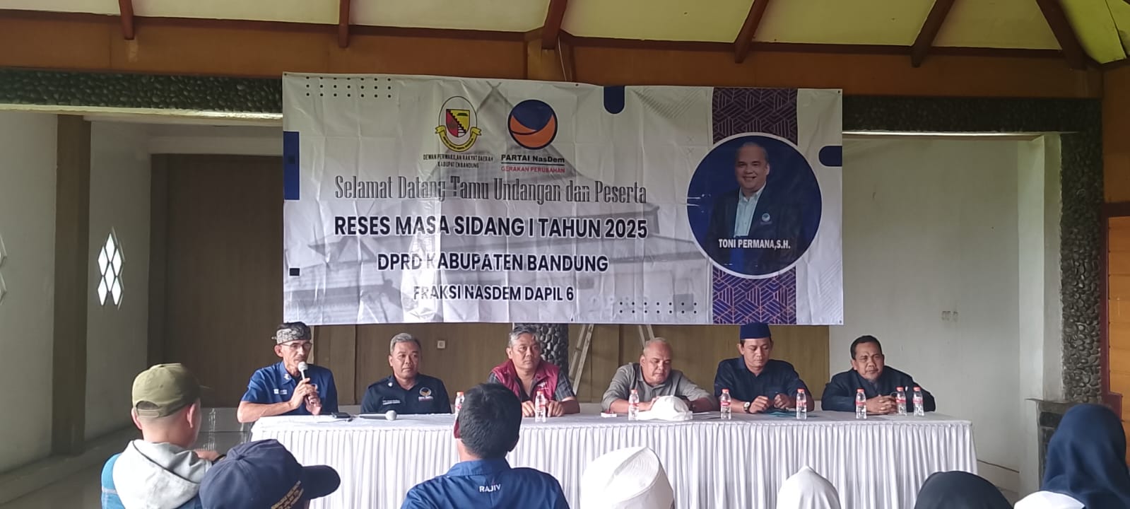 Reses H. Toni Permana di Dapil 6 Kabupaten Bandung adalah kegiatan rutin anggota DPRD dari Fraksi NasDem untuk menyerap aspirasi dan pengaduan masyarakat sebagai bentuk pertanggungjawaban moral dan politis kepada konstituen. Toni Permana yang merupakan anggota DPRD sekaligus Ketua Fraksi Komisi C DPRD Kabupaten Bandung,