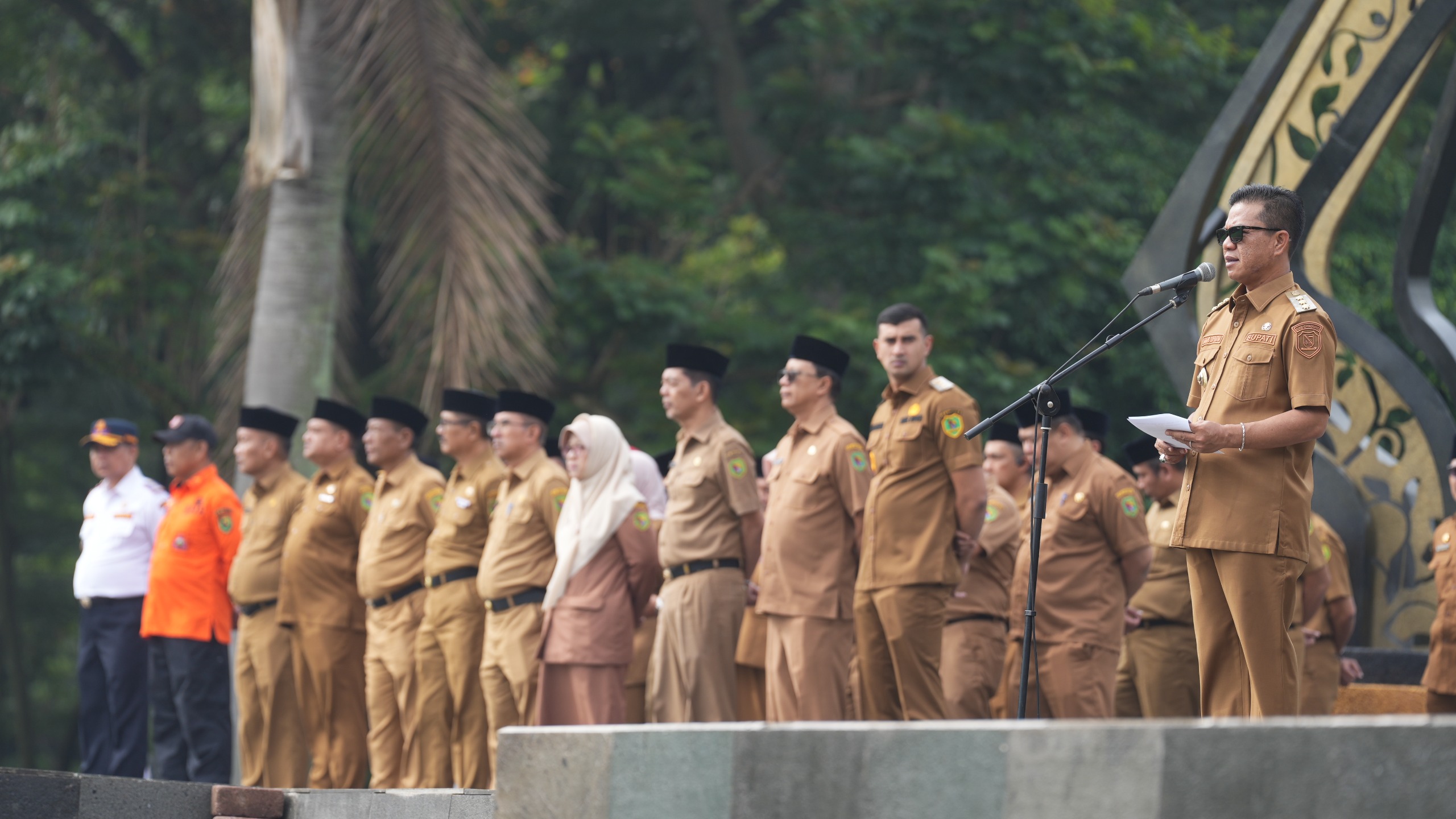 KABUPATEN BANDUNG Qjabar – Bupati Bandung, Dadang Supriatna memimpin apel pagi Aparatur Sipil Negara (ASN) di Lapangan Upakarti, Soreang, Senin (3/11/2025). Dalam arahannya, ia mengapresiasi kinerja ASN Kabupaten Bandung yang berhasil mengantarkan pemerintah daerah meraih nilai 96% dari Ombudsman RI atas penilaian kepatuhan standar pelayanan publik.