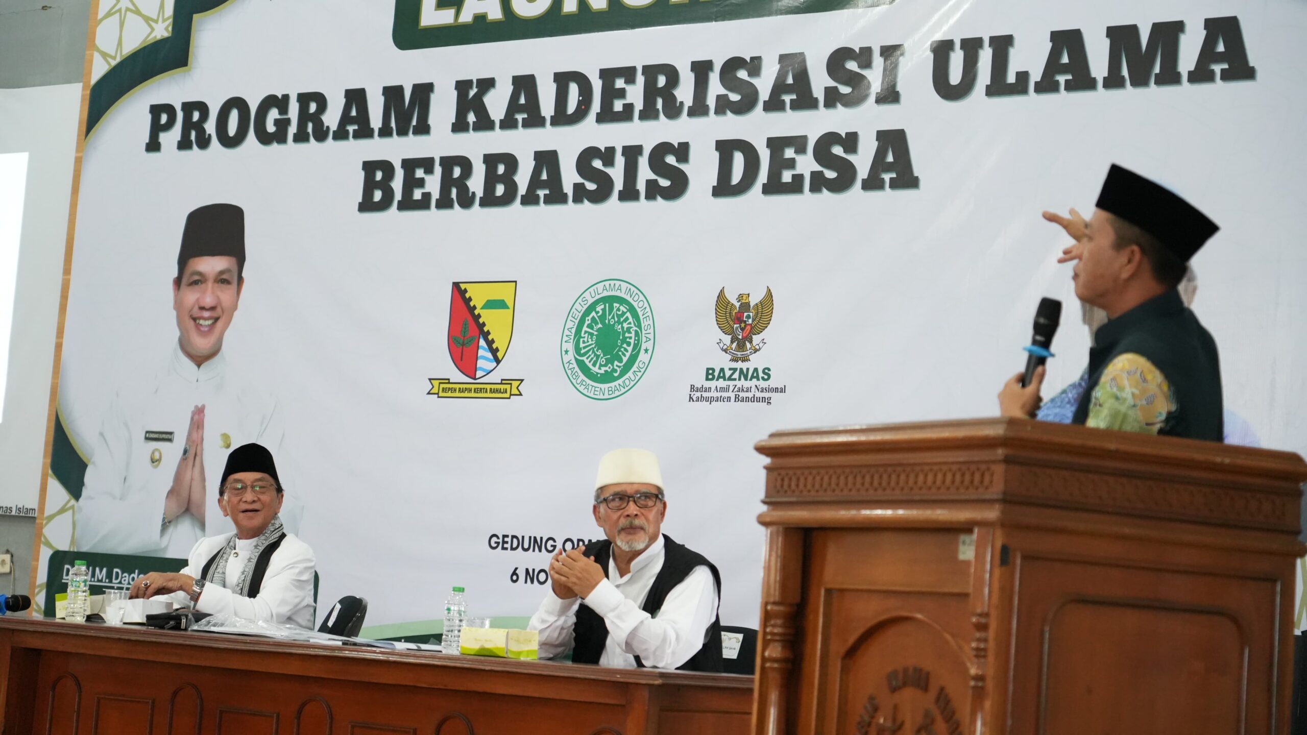 KABUPATEN BANDUNG Qjabar — Bupati Bandung, Dadang Supriatna menegaskan pentingnya peran Majelis Ulama Indonesia (MUI) Desa dalam membina umat, mengawal syariat Islam, serta menyiapkan kader ulama yang berkompeten hingga ke tingkat desa. Hal tersebut disampaikannya pada kegiatan Program Kaderisasi Ulama Berbasis Desa yang digelar di Gedung Ormas Islam, Soreang, Kamis (6/11/2025).