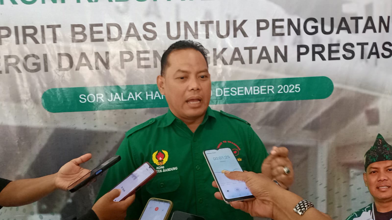 Ketua KONI Kabupaten Bandung H. Yana Suryana, S.Pd.I mengatakan Rakerkab KONI tahun 2025 sengaja menggunakan aula kantor Dispora karena alasan anggaran. Namun demikian Rakerkab tersebut tidak.mengurangi makna meskipun diselenggarakan di lingkungan komplek stadion si Jalak Harupat.