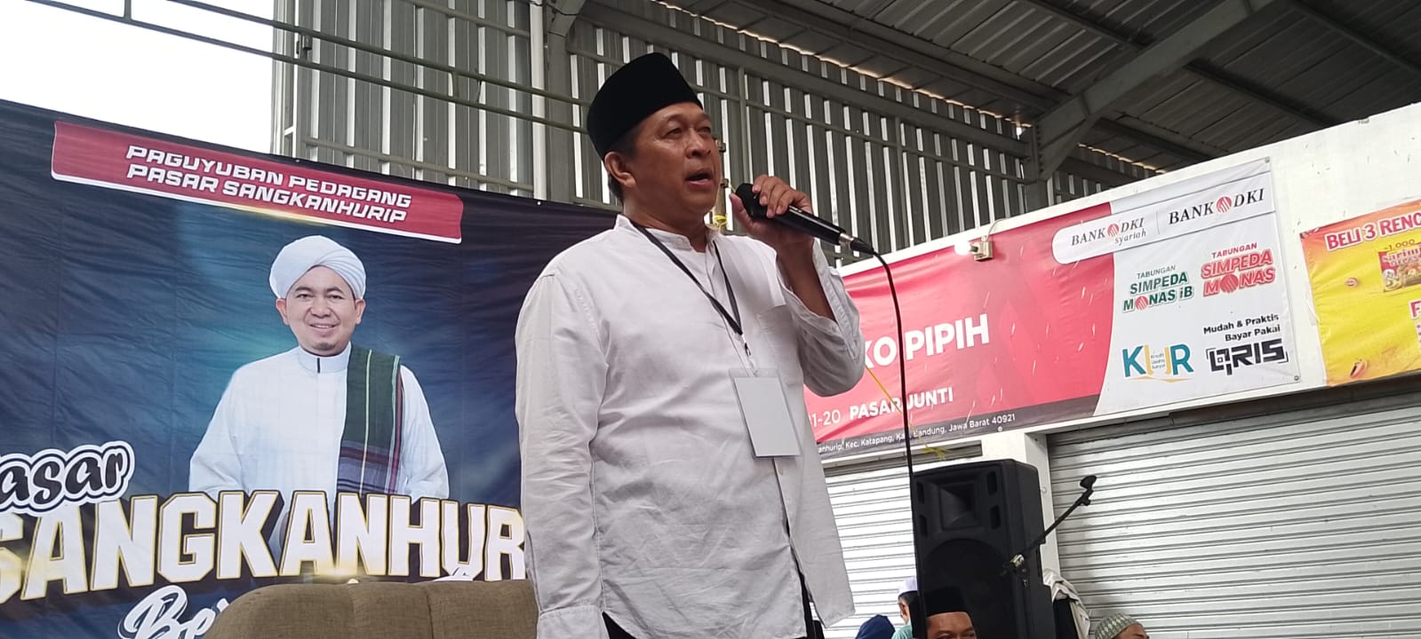 Kabupaten Bandung Qjabar – Paguyuban Pedagang Pasar Sangkanhurip mengadakan ” Pasar Sangkanhurip Bersholawat” dengan mengundang KH. Ahmad Saimul Apip sebagai penceramah yang juga Pimpinan pondok pesantren Addhlaaniyyah Soreang kabupaten Bandung, kegiatan tersebut berlangsung di Area Pasar Sangkanhurip, Minggu 21 Desember 2025.