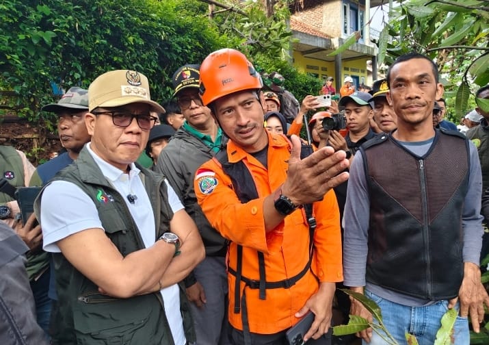 Kabupaten Bandung Qjabar – Bupati Bandung Dadang Supriatna meninjau langsung lokasi bencana longsor di Kampung Condong, Desa Wargaluyu, Kecamatan Arjasari, Kabupaten Bandung, yang terjadi pada hari kemarin Jumat (5/12/2025) sore.